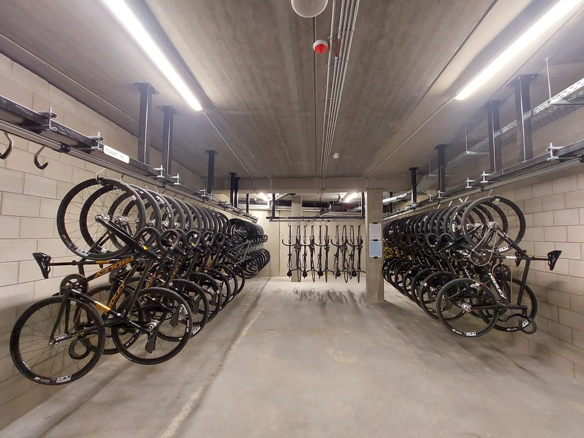 Le concept est simple - des crochets coulissants et rotatifs permettent aux vélos alternatifs d'être tournés à 180⁰ et rangés plus près les uns des autres, ce qui permet d'économiser de l'espace par rapport à des systèmes similaires.